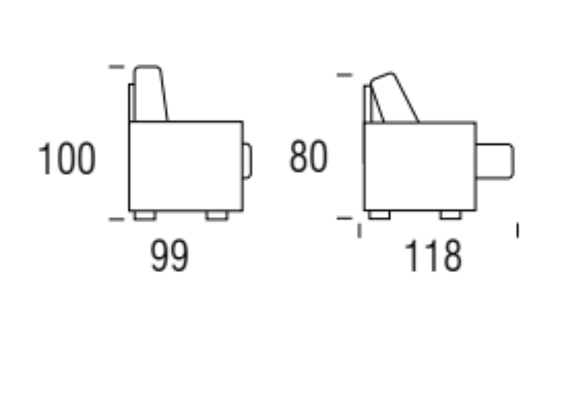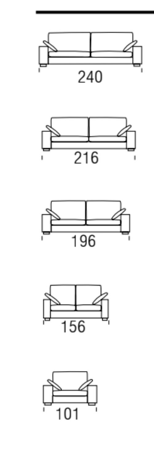 - Fondo 99 cm. x Alto 100 cm. x frente 101 , 156 , 196 , 216 , 240 cm. Todos con dos asientos